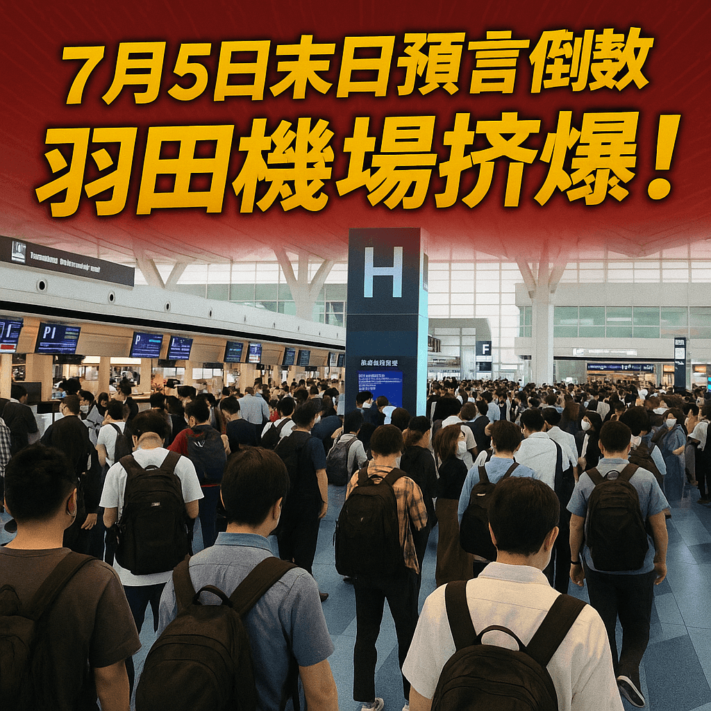 隨著2025年7月5日的臨近,一則源自日本漫畫家的「末日預言」引發亞洲地區大規模恐慌。7月4日上午,日本東京羽田機場擠滿人潮,航廈內人聲鼎沸,排隊旅客數量異常。日本知名企業家兼網紅堀江貴文在社群平台X上發文,質疑是否有這麼多人真的相信「預言」,引發網友熱烈討論。