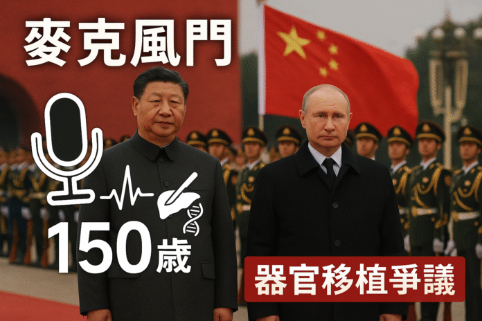 【觀view深度觀察】2025年9月3日,在北京舉行的慶祝「二戰」結束80周年閱兵活動中,一段意外被麥克風錄下的對話震驚了國際社會。中國國家主席習近平與俄羅斯總統普京在走向天安門觀禮台時,被聽到私下討論器官移植和人類壽命延長的可能性,甚至談及「長生不老」這一看似天方夜譚的話題。