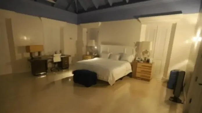 此次由眾議院監督委員會民主黨領袖羅伯特·加西亞(Robert Garcia)主導公佈的影像,主要拍攝於2020年。彼時,愛潑斯坦已於2019年在獄中離奇死亡,島上的奢華莊園正處於被執法人員搜查、物品被打包清點的狀態。然而,即便是在這種「人去樓空」的場景下,殘留的痕跡依然透露出令人窒息的詭異氣息。