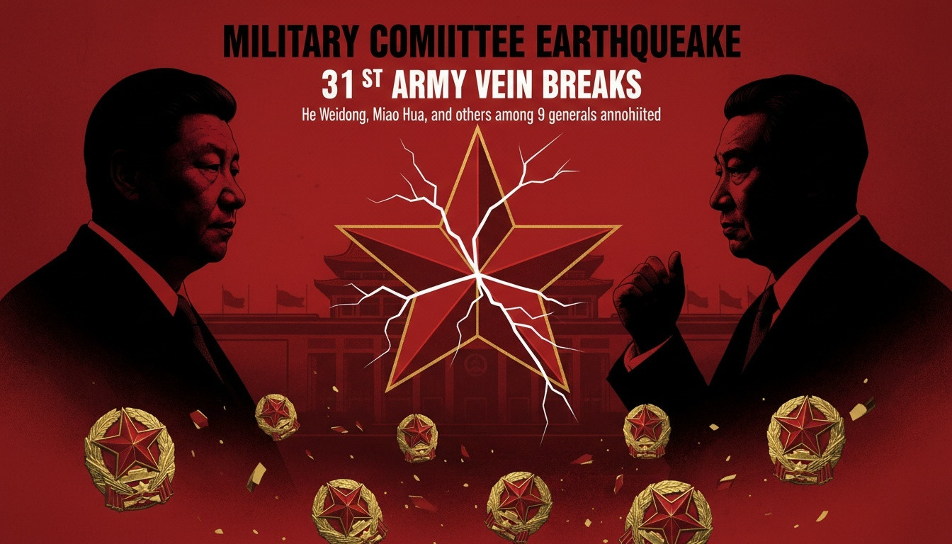 這份名單不僅涵蓋了軍隊最高層,其中八人更是中共中央委員,將在即將召開的四中全會上予以追認。這起事件徹底顛覆了外界對中共軍委權力格局的既有認知,標誌著一場始於「31軍」崛起的權力博弈走向了令人震驚的結局。