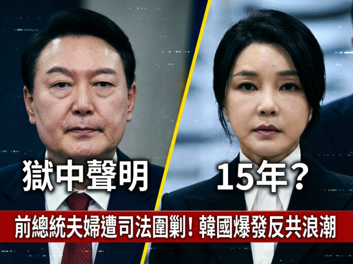 在首爾中央地方法院,前第一夫人金建希身著一襲肅穆的黑色套裝,獨自面對檢方求處15年有期徒刑的重壓;而在幾公里外的首爾看守所,身陷囹圄的前總統尹錫悅發出了震耳欲聾的獄中聲明,痛斥韓國已淪為「親共賣國勢力的間諜天堂」。這對曾經權傾一時的夫婦,如今雖身處高牆內外,卻共同承受著來自政治對手與左派輿論的驚濤駭浪。